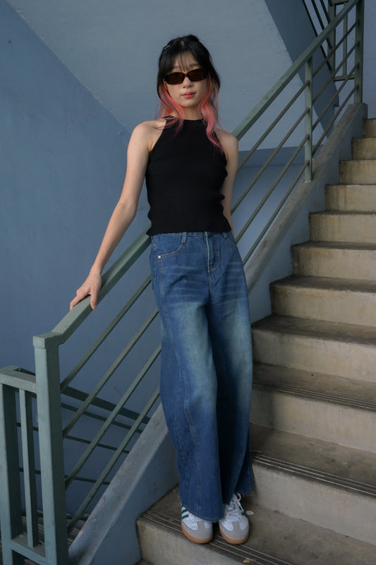 Jaslynn High Waisted Raw Hem Wide Leg Denim