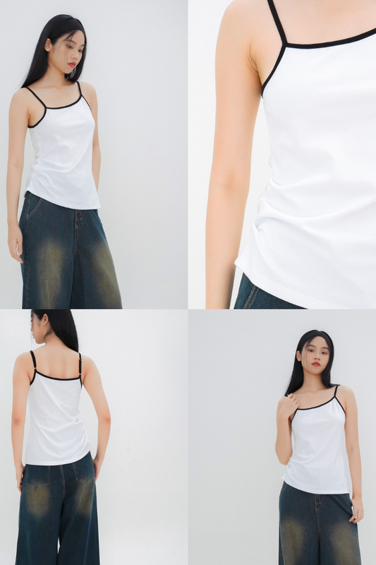 Skylar Contrast Trim Top (White)