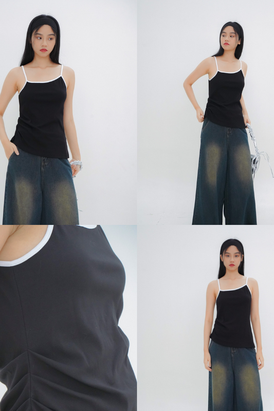 Skylar Contrast Trim Top (Black)
