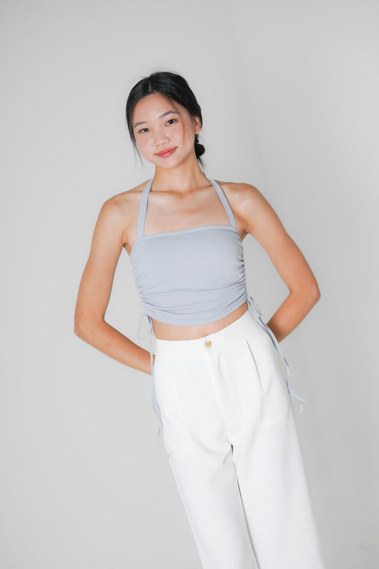 Poppy Padded Halterneck Top with Side Ruching (Greyish-Blue)