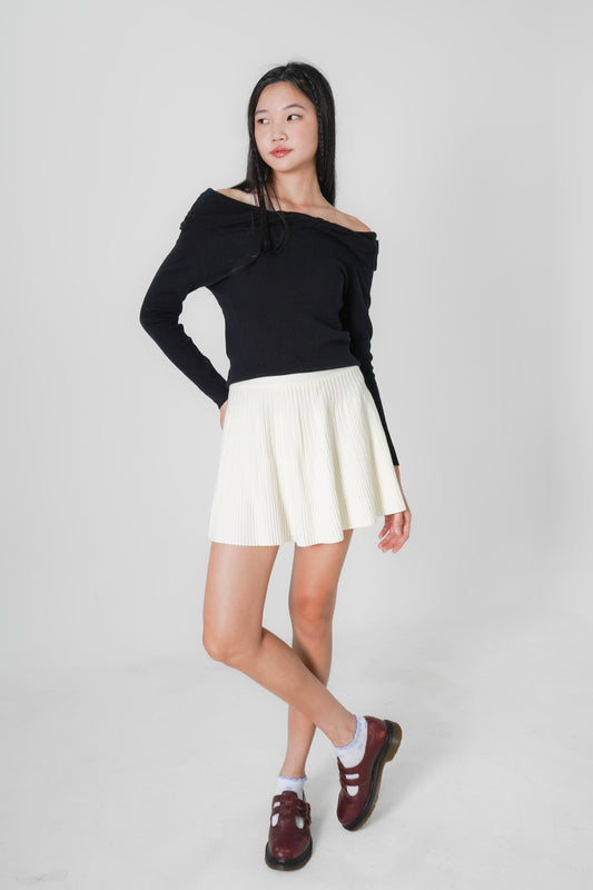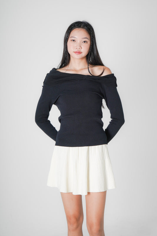 Austen Off Shoulder Knitted Top (Black)