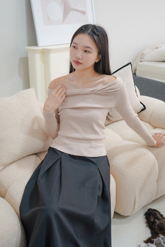 Austen Off Shoulder Knitted Top (Khaki)