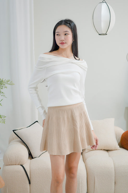 Austen Off Shoulder Knitted Top (White)