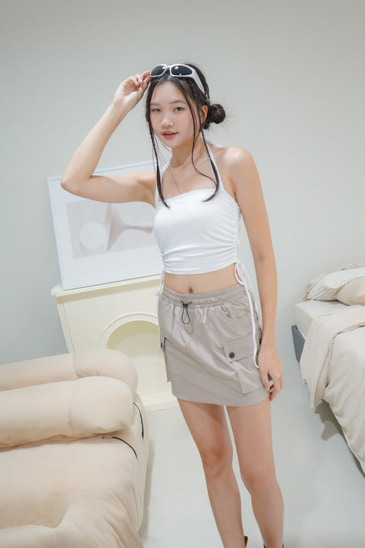Poppy Padded Halterneck Top with Side Ruching (White)