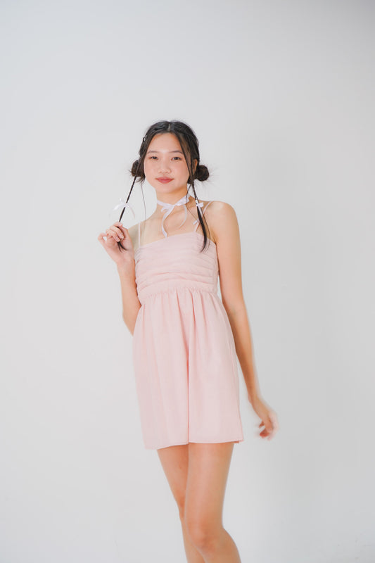 Carmen Pleated Mini Dress (Baby Pink)