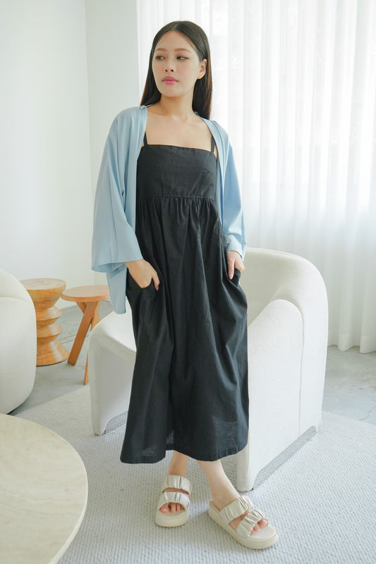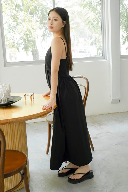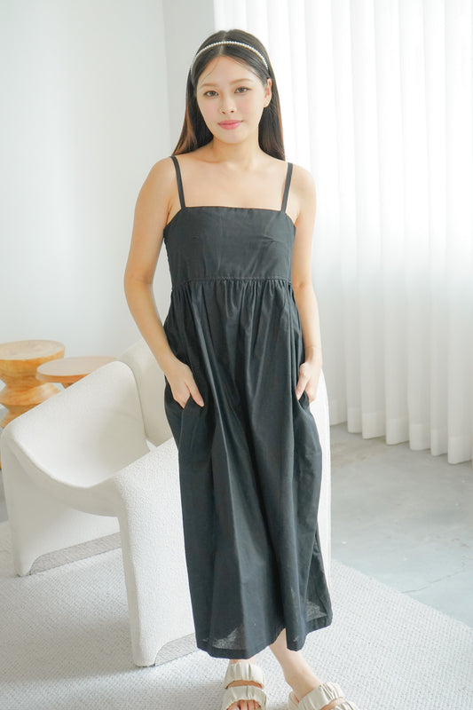 Alora Linen Maxi Dress with Adjustable Straps (Black)