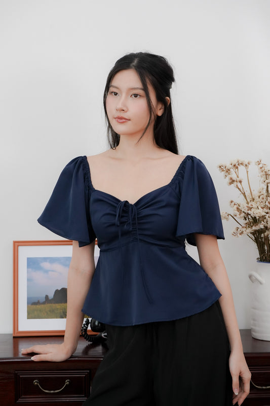 Aria Flutter Sweetheart Top (Navy)