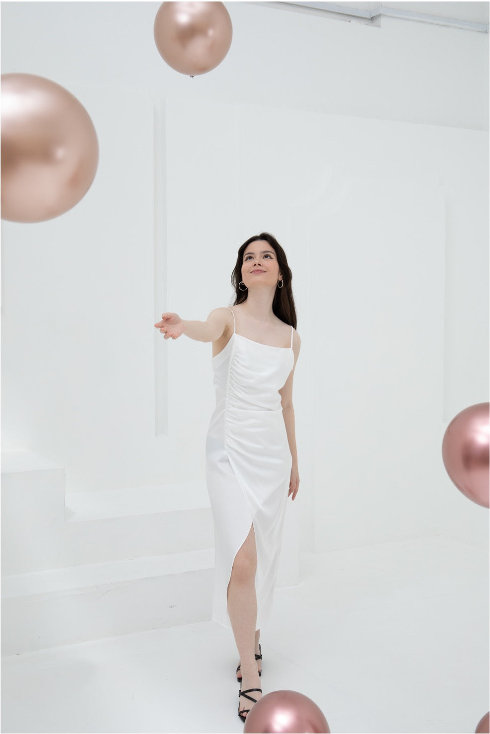 Be stunning and elegant in this ruched satin sleeveless dress, which highlights your body curves naturally and in a flattering manner. Show off your charm and feel like a queen in this dress. You will slay in this.