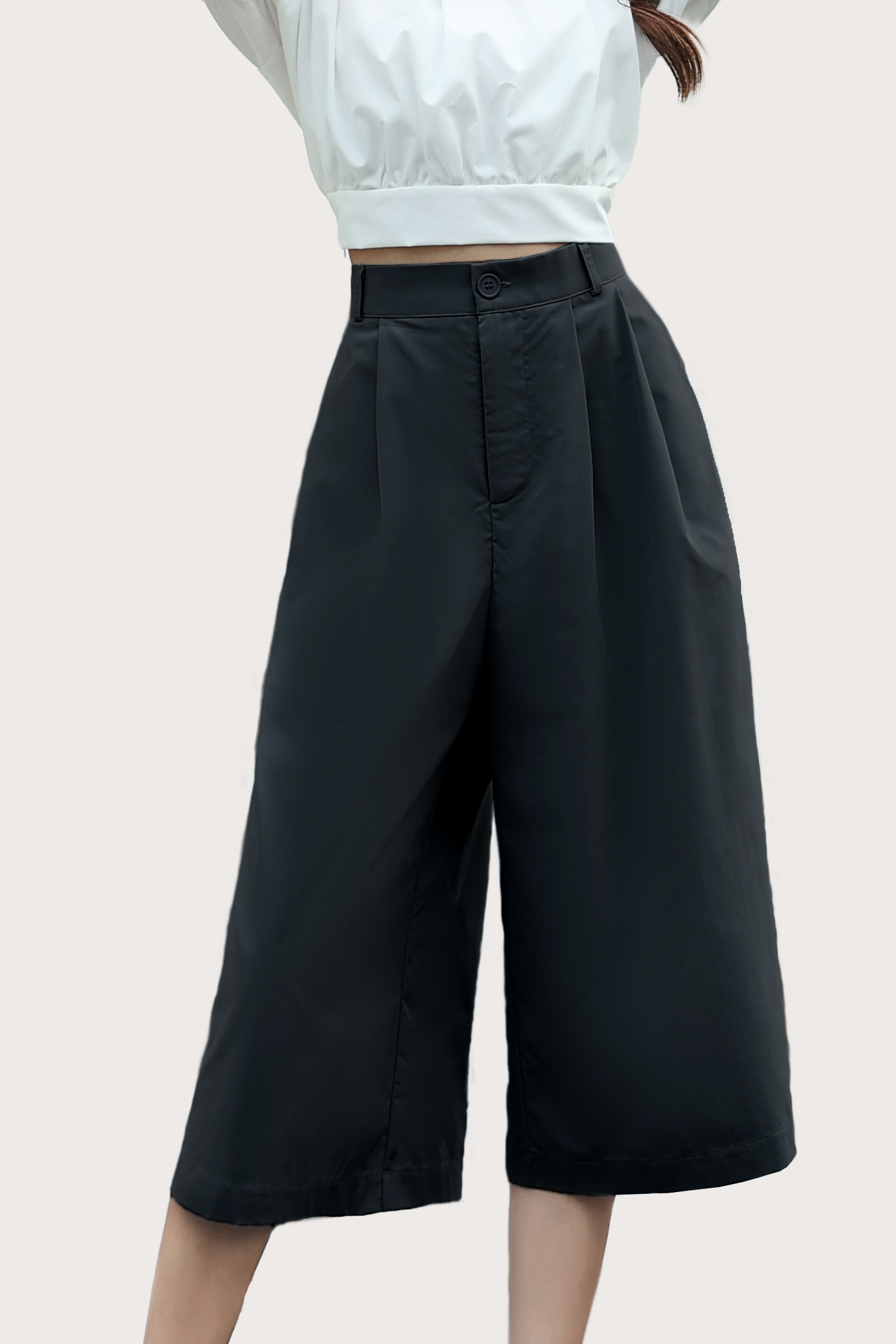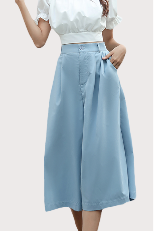 This wide leg cropped pants comes with functional side pockets and an elastic band at the back. A simple piece that you can easily match with tops, and suitable for casual outings.