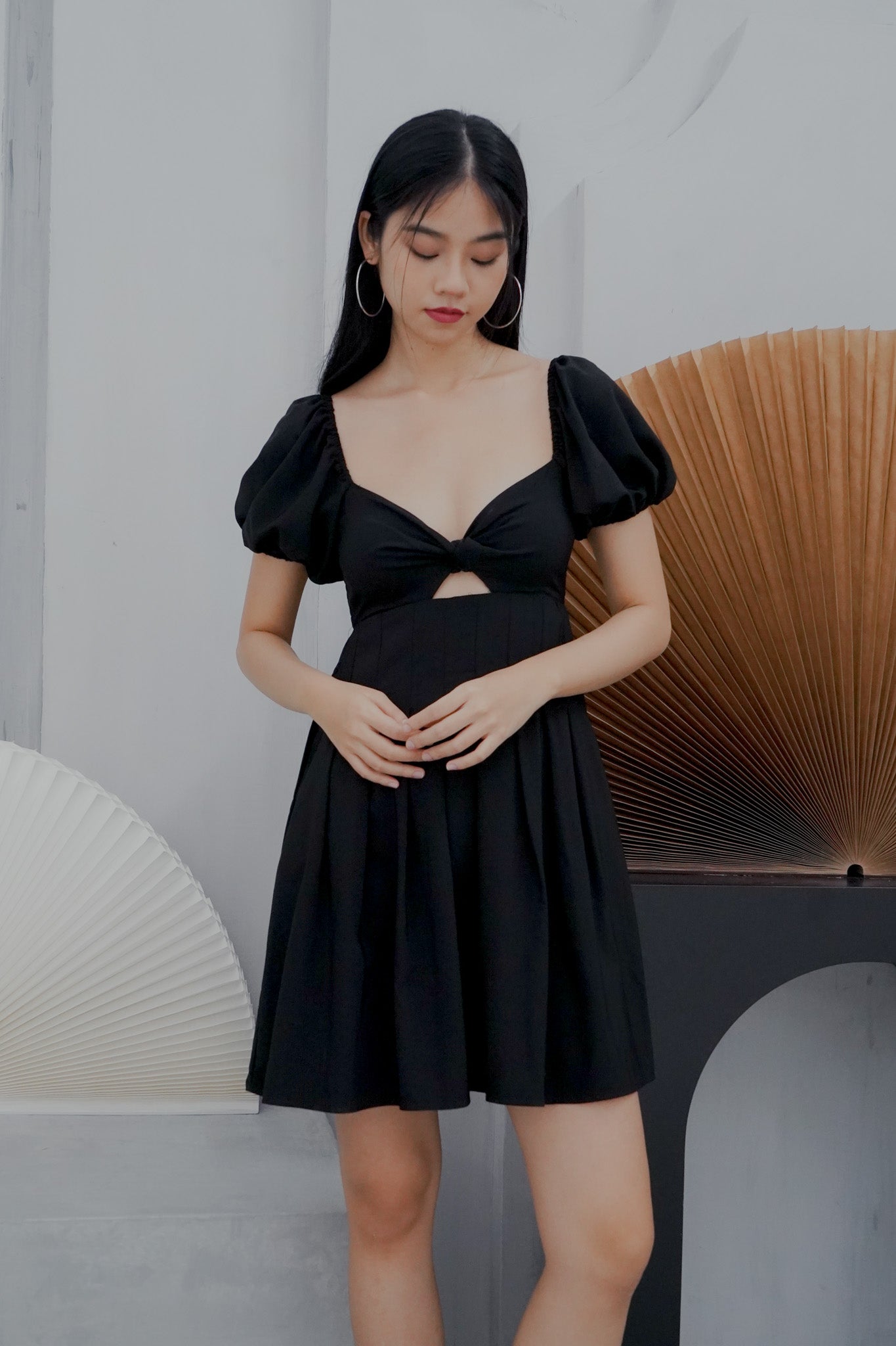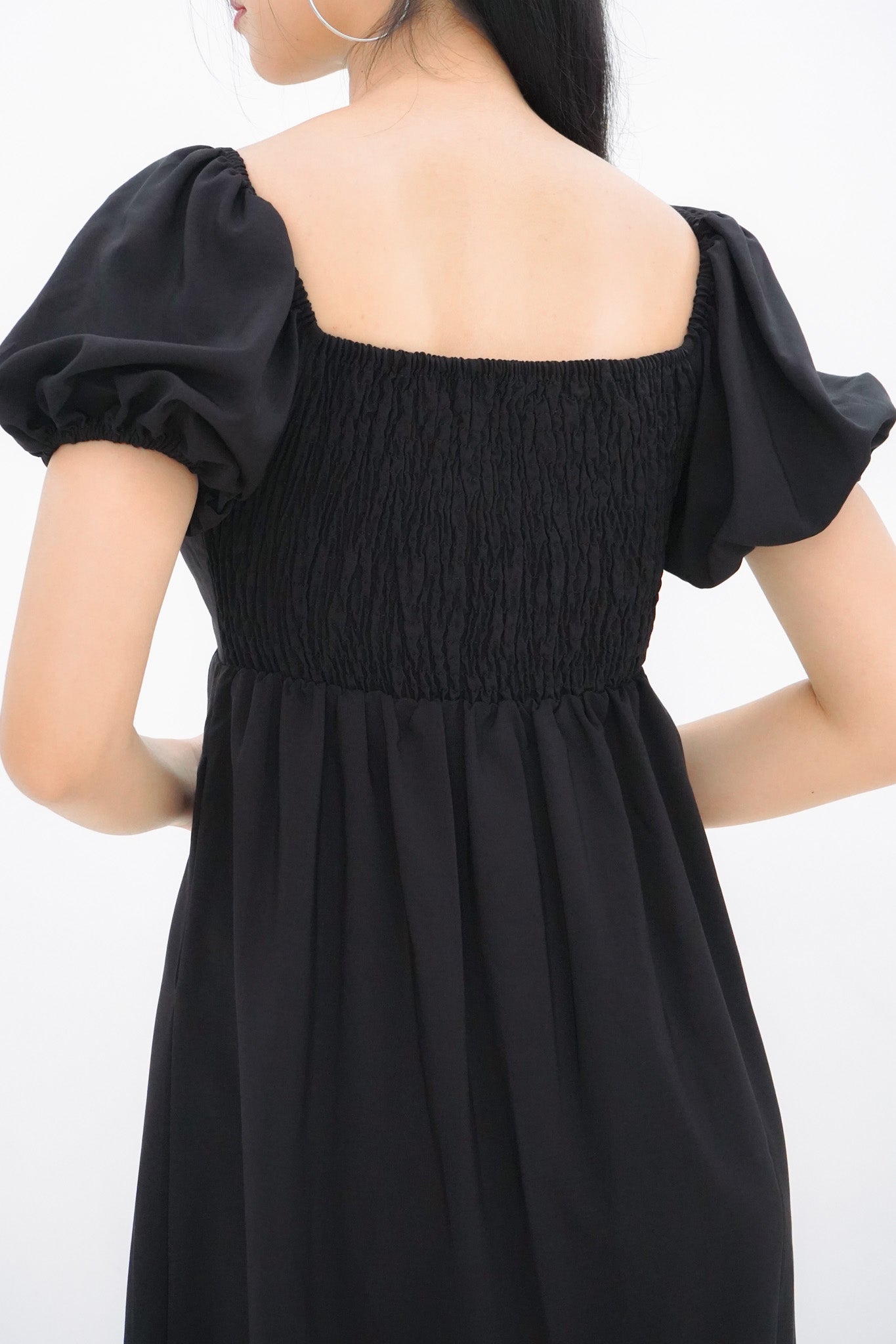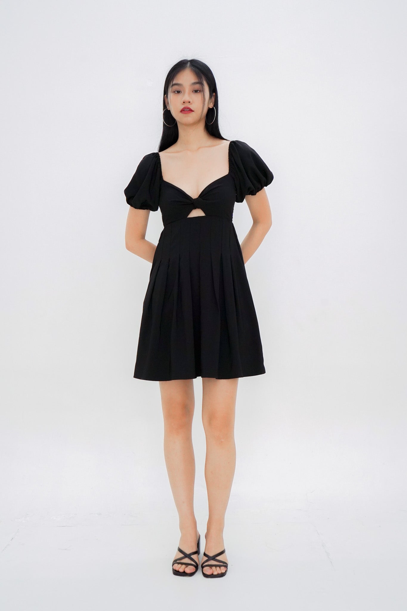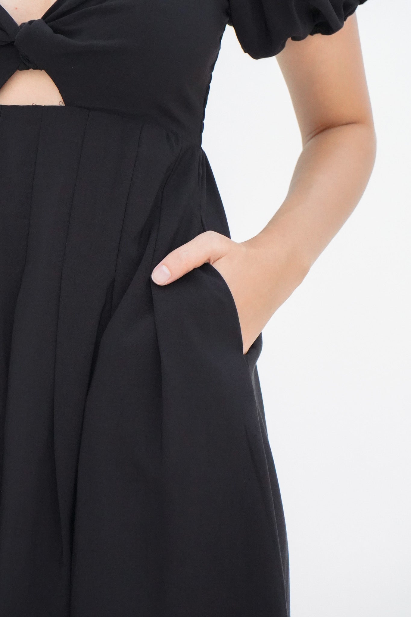 Dakota Padded Puff Sleeve Dress with Cut-out (Black)