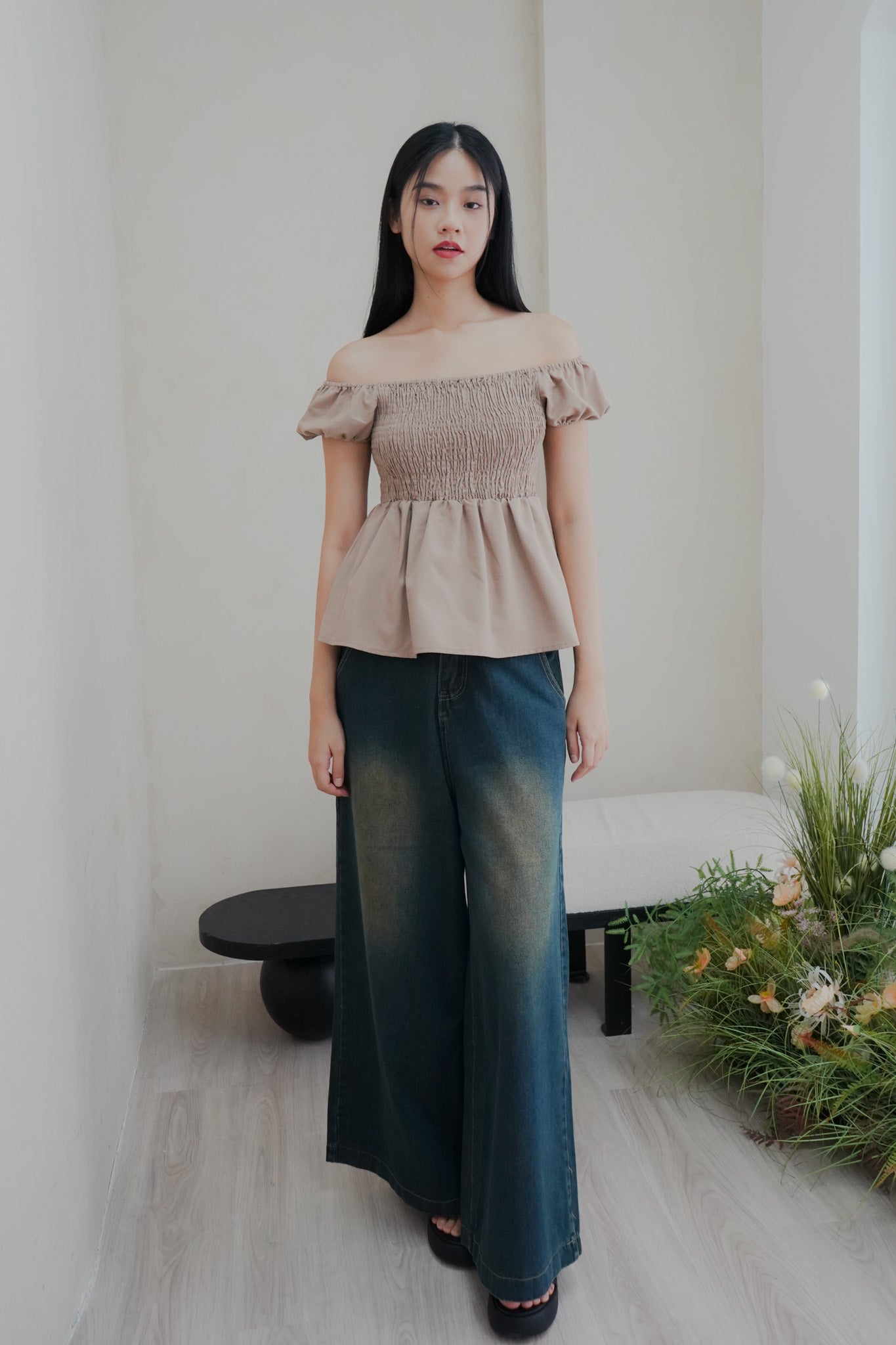 A perfect blend of effortless style and everyday comfort, Gia is crafted from a linen blend material that's breathable and great for sunny weather. Gia is smocked front & back, providing a snug fit, and flares out to a peplum silhouette. The cap puff sleeves give a romantic touch and can be worn as an off-shoulder top.