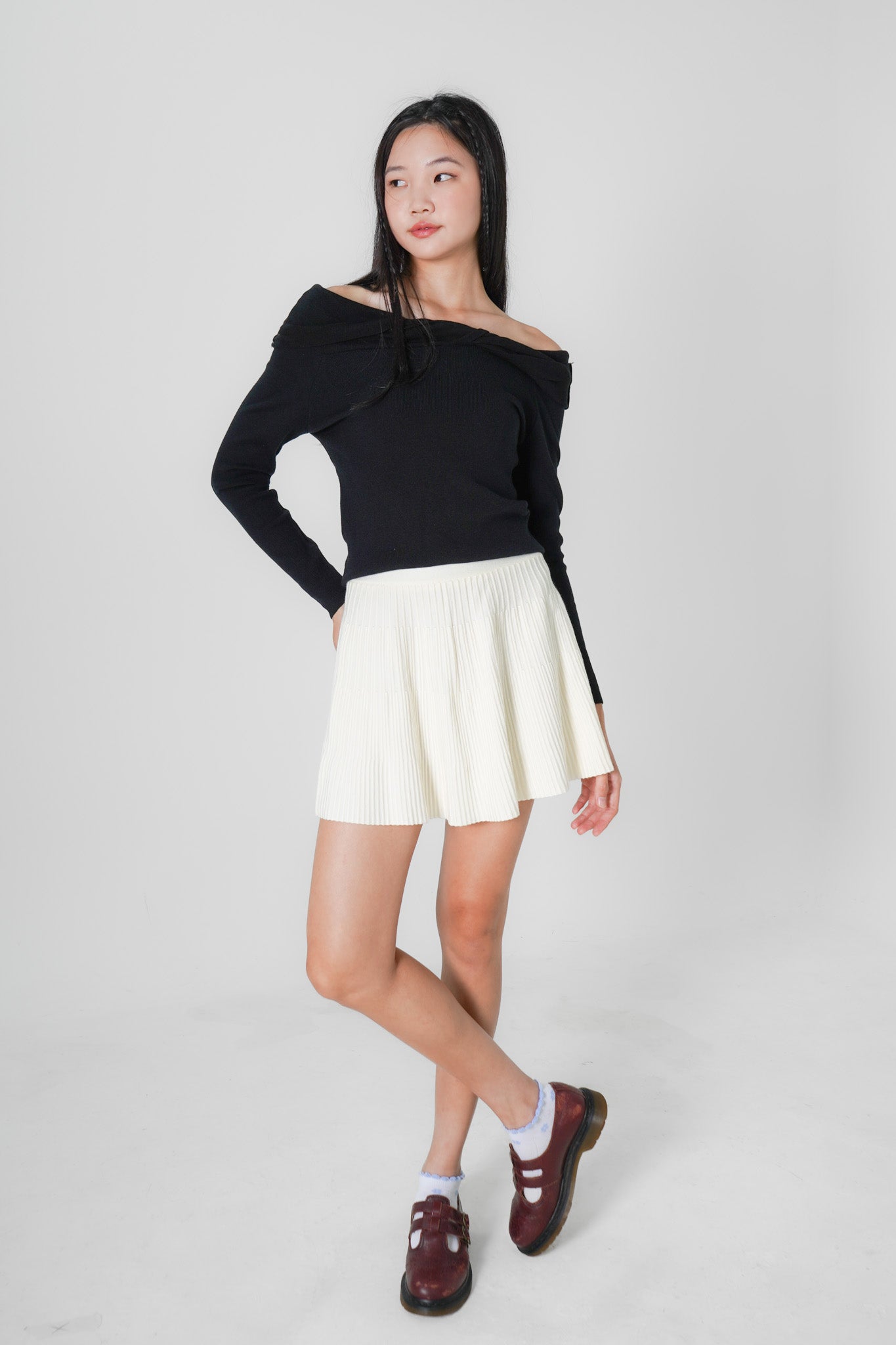 Gracie Pleated Mini Skirt (White)