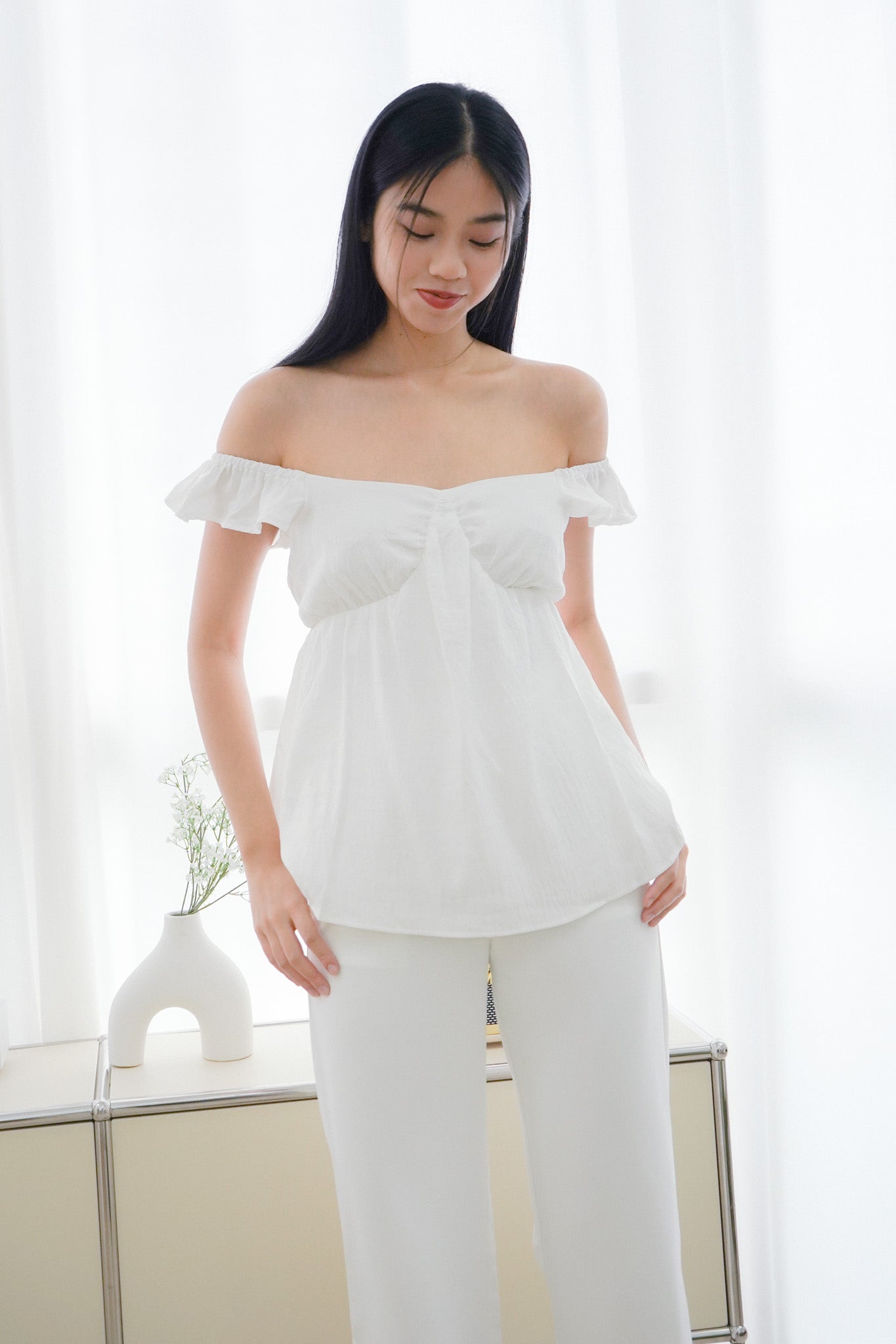 Ivy can be worn as an off-shoulder top for a romantic look, making this a versatile and timeless top to have in your closet!