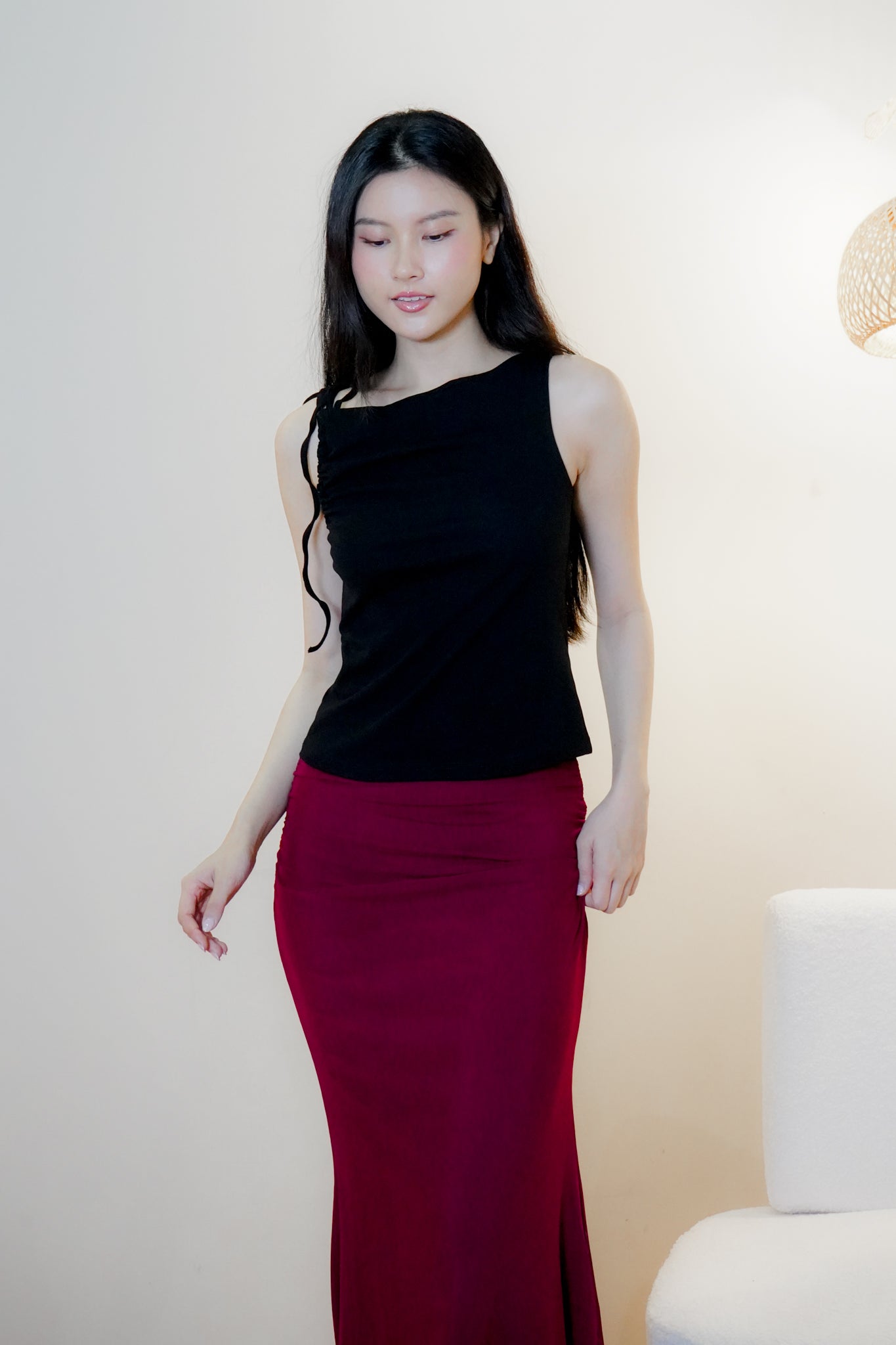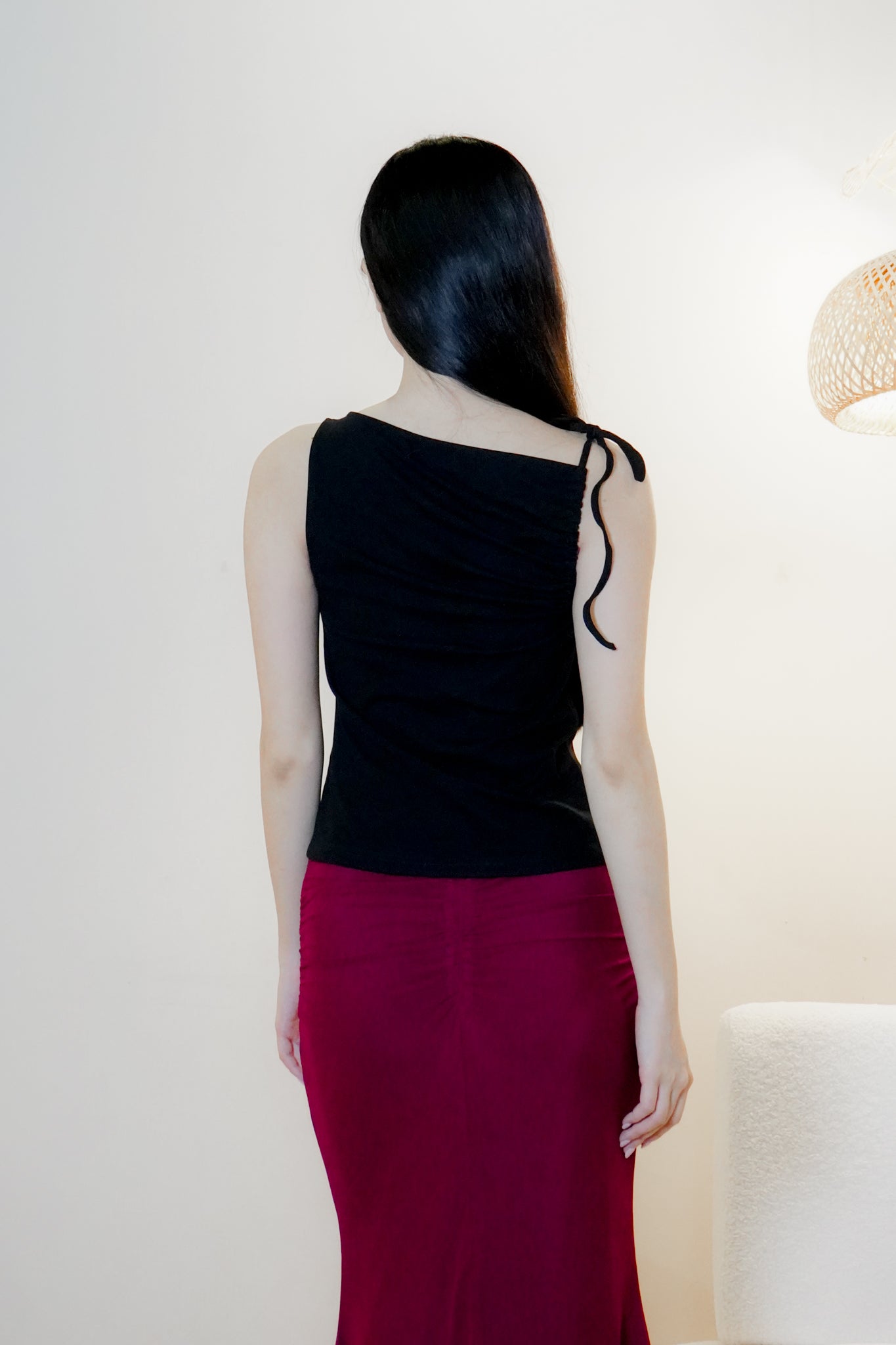 Jemma Asymmetrical draped top with strap (one side) (Black)
