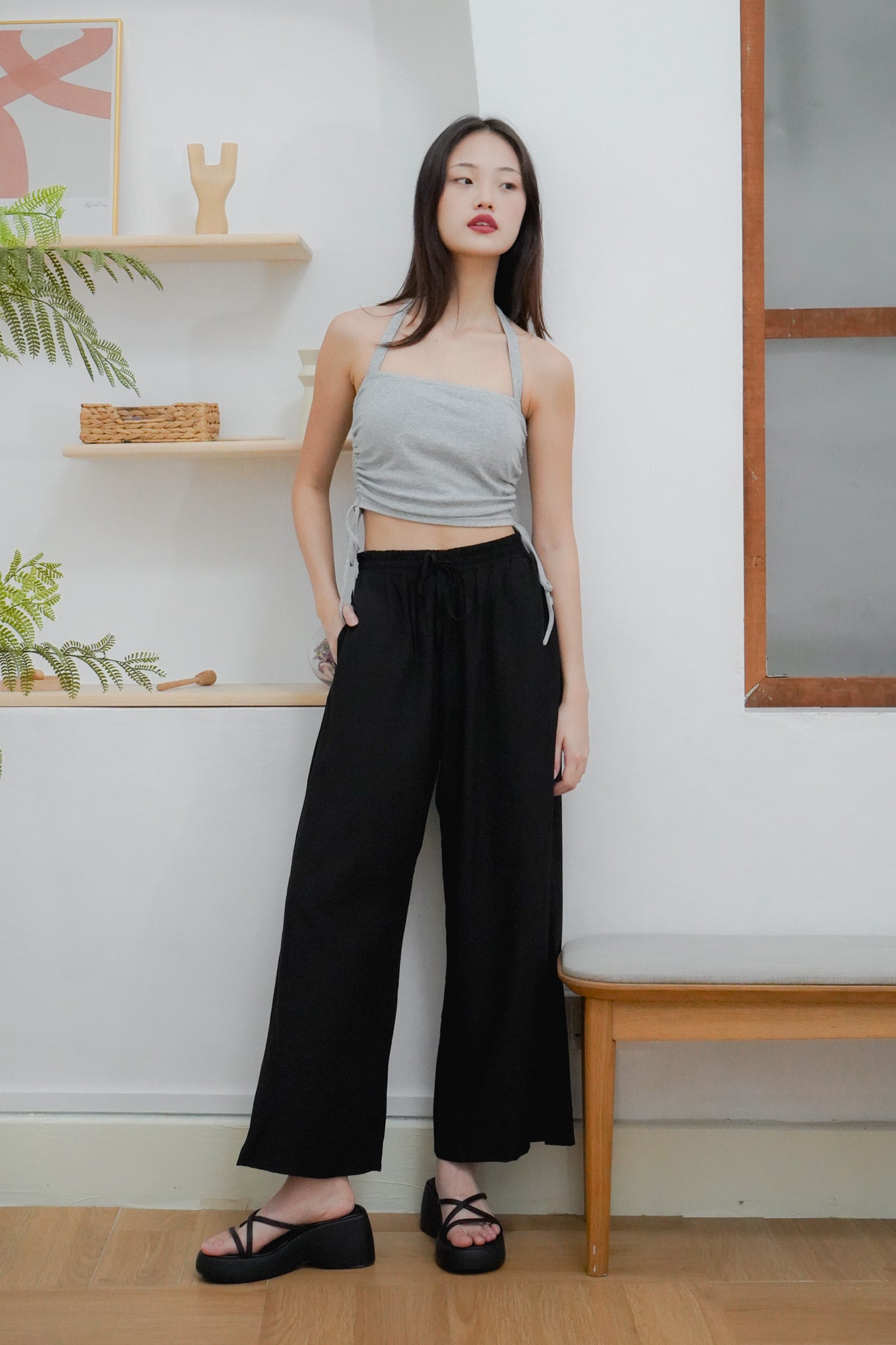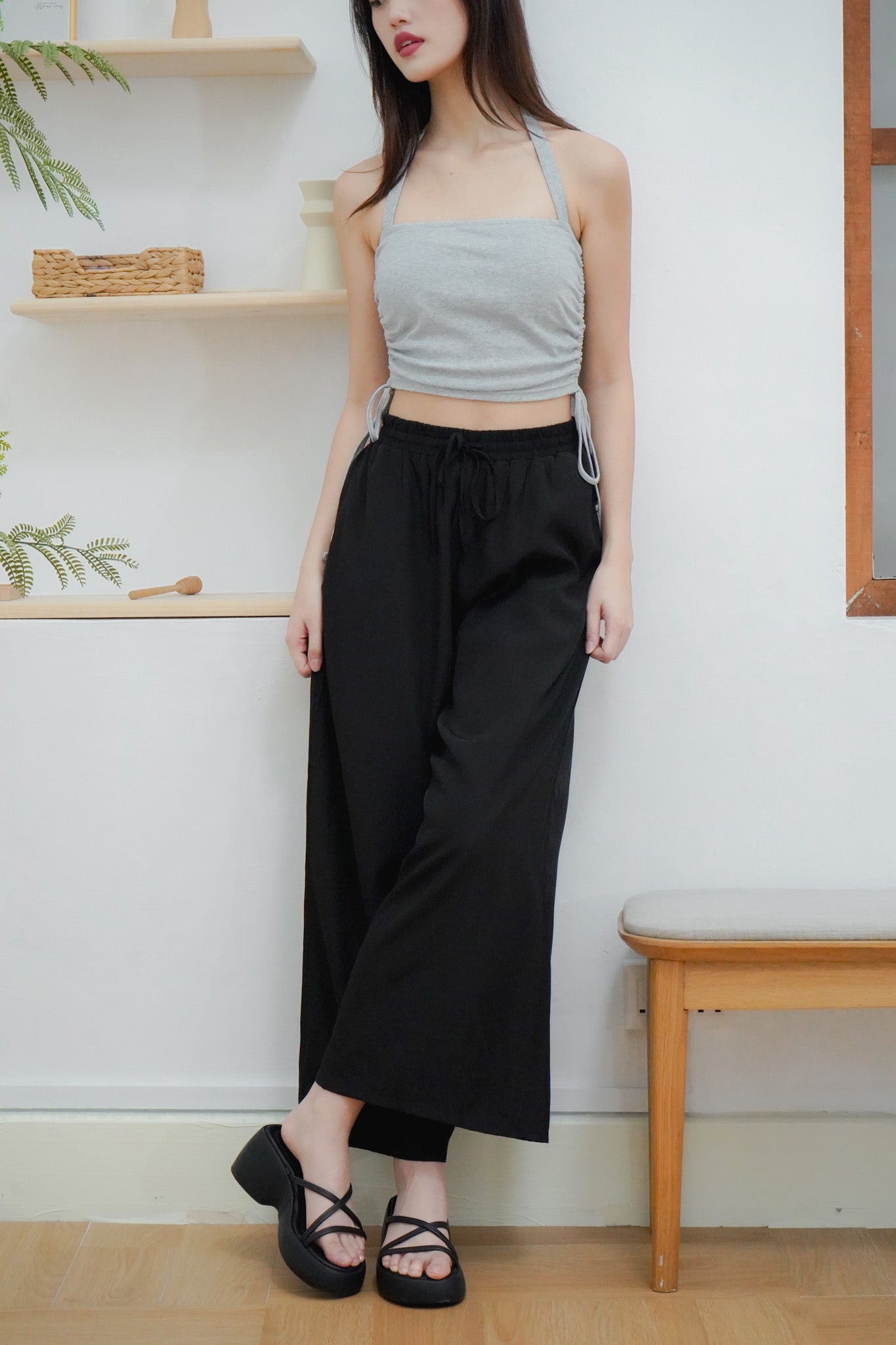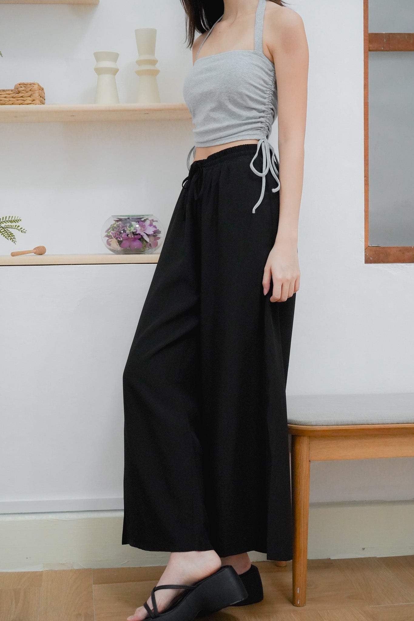 A wardrobe staple — our Junia Wide Leg Pants is your new must-have as it is a sleek and comfy pair of pants! Junia can be worn high or low waisted as the waistband is fully elasticated with a drawstring feature that you can adjust.