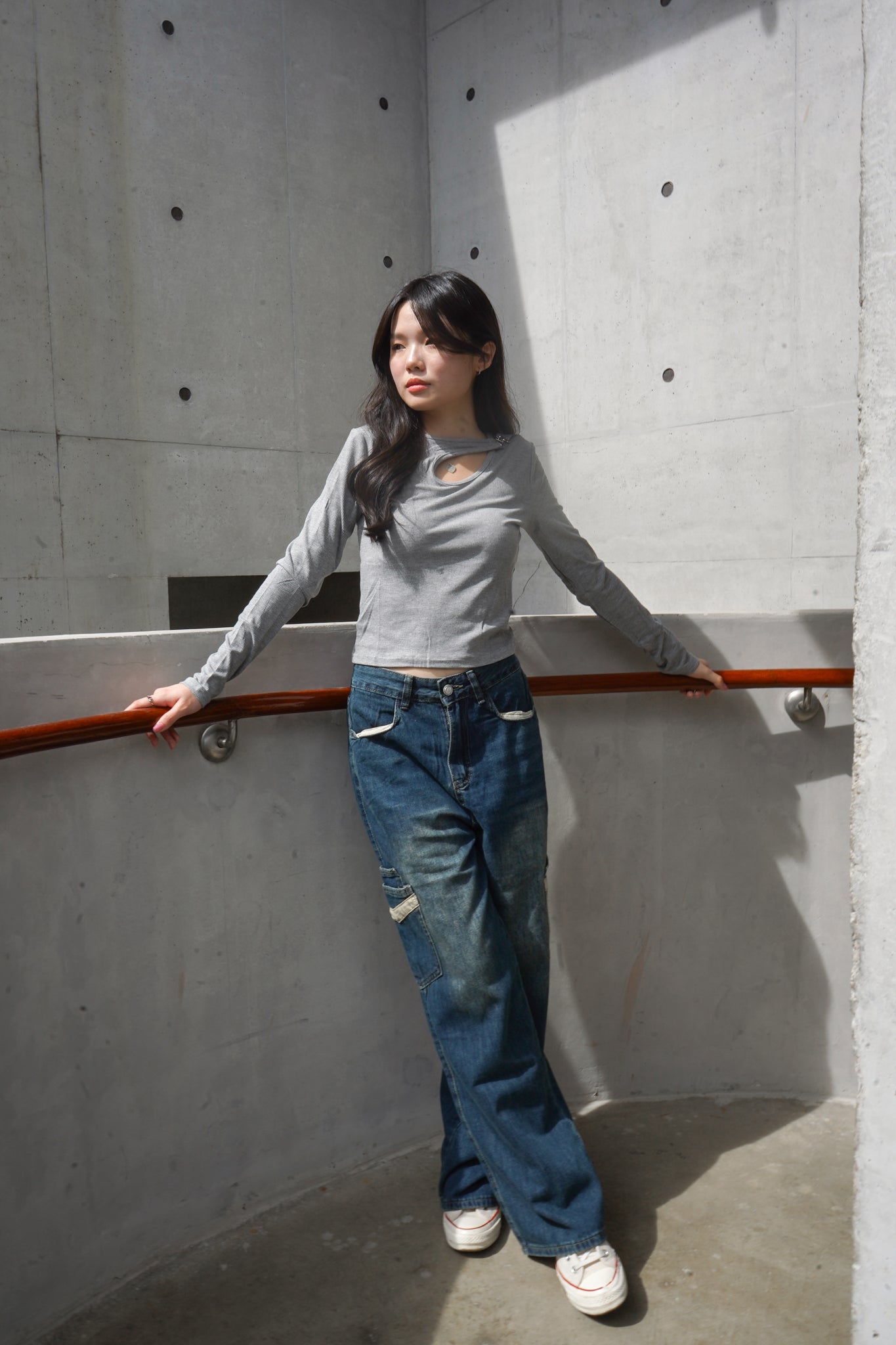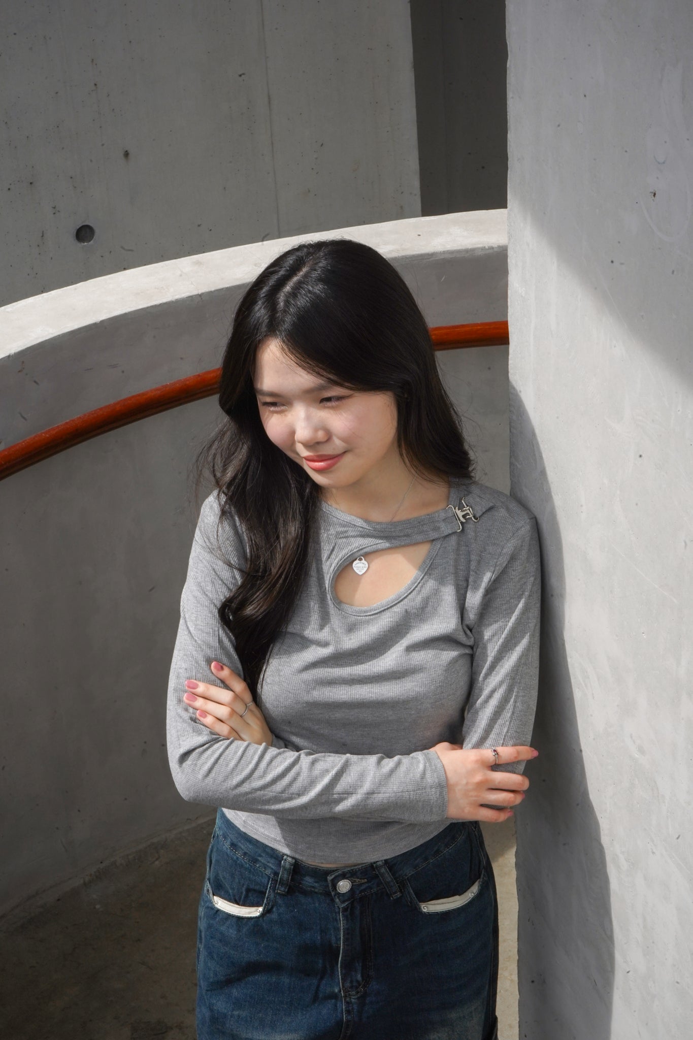 Kinsley Keyhole Long Sleeve Top (Grey)