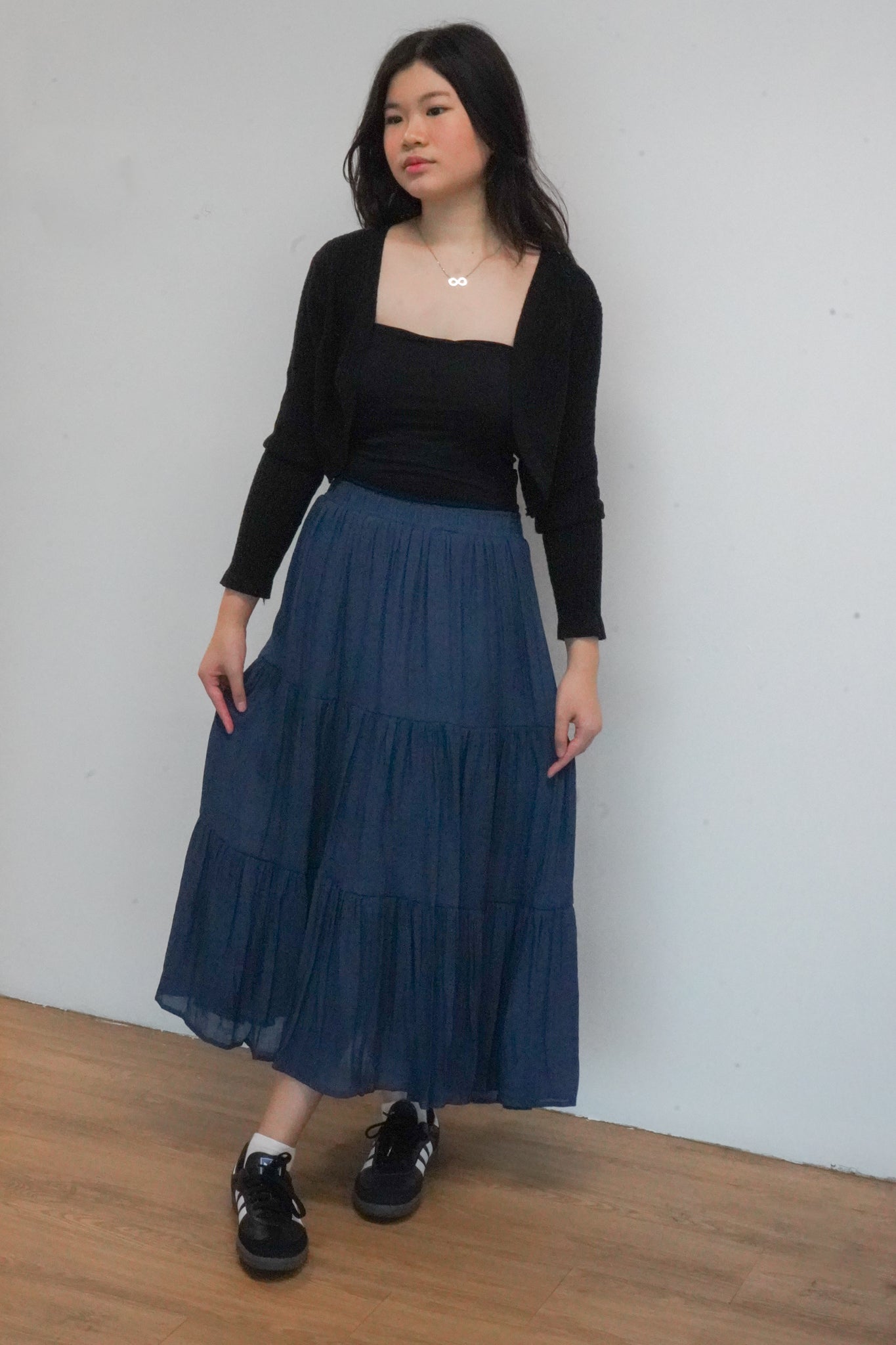 Looking for a light and dreamy piece to add to your wardrobe - meet Leah. A linen tiered maxi skirt features a light and flowy silhouette, designed for your summery lookbook. Complete the look with our basic square / round neck crop tee.