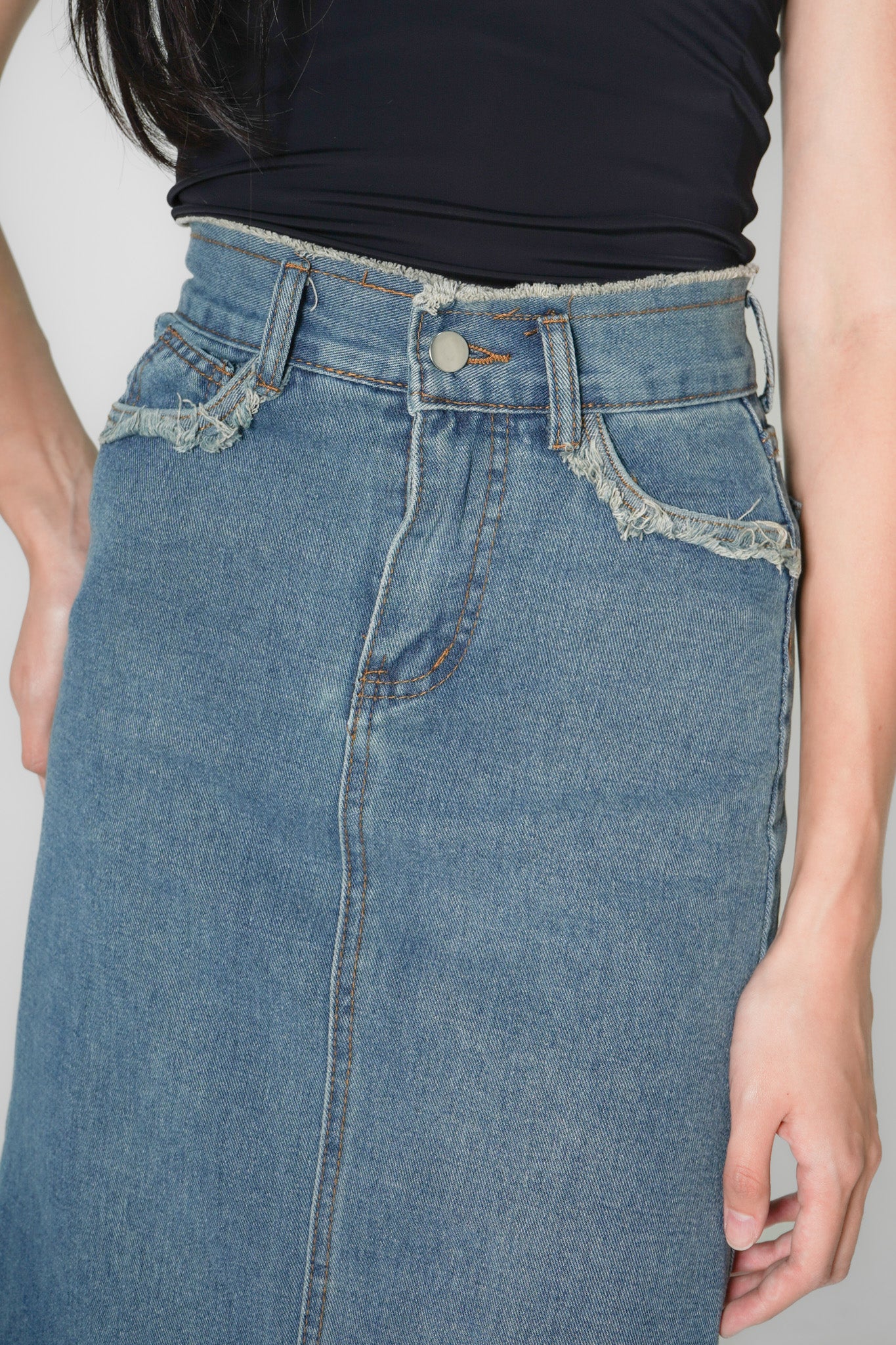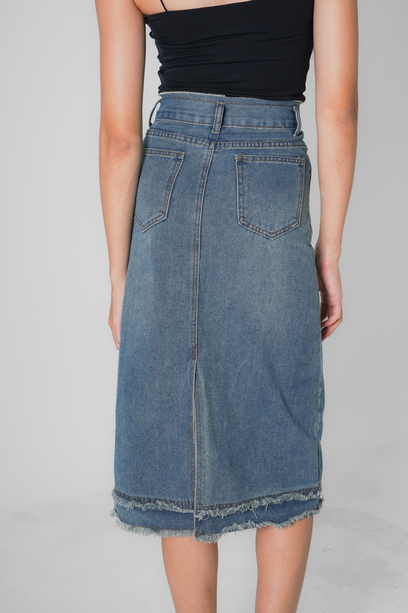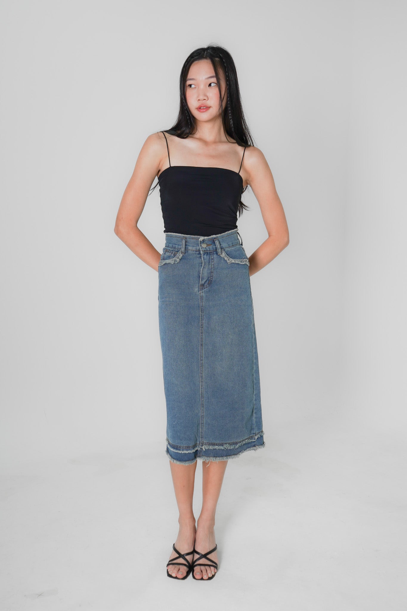 A touch of edge to the classic denim look, making it perfect for both casual and trendy outfits - meet Mirin. The frayed hem gives the skirt a slightly worn-in, distressed look that is effortlessly cool. The skirt is designed high-waisted with a slight flare at the bottom for that elongated waistline without restricting overall movement. Pair Mirin with a simple tank top or cropped t-shirt, along with flat sandals to create a breezy, everyday look.