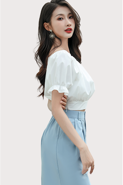 Puffed Sleeves White Crop Top