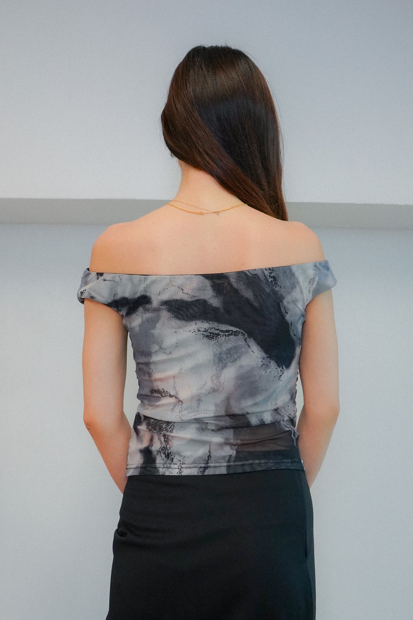 Show off your shoulders with our Reign Padded Mesh Off-shoulder Top! Made with a beautiful watercolour print mesh, Reign features a flattering silhouette; an off-shoulder look with ruched sides.