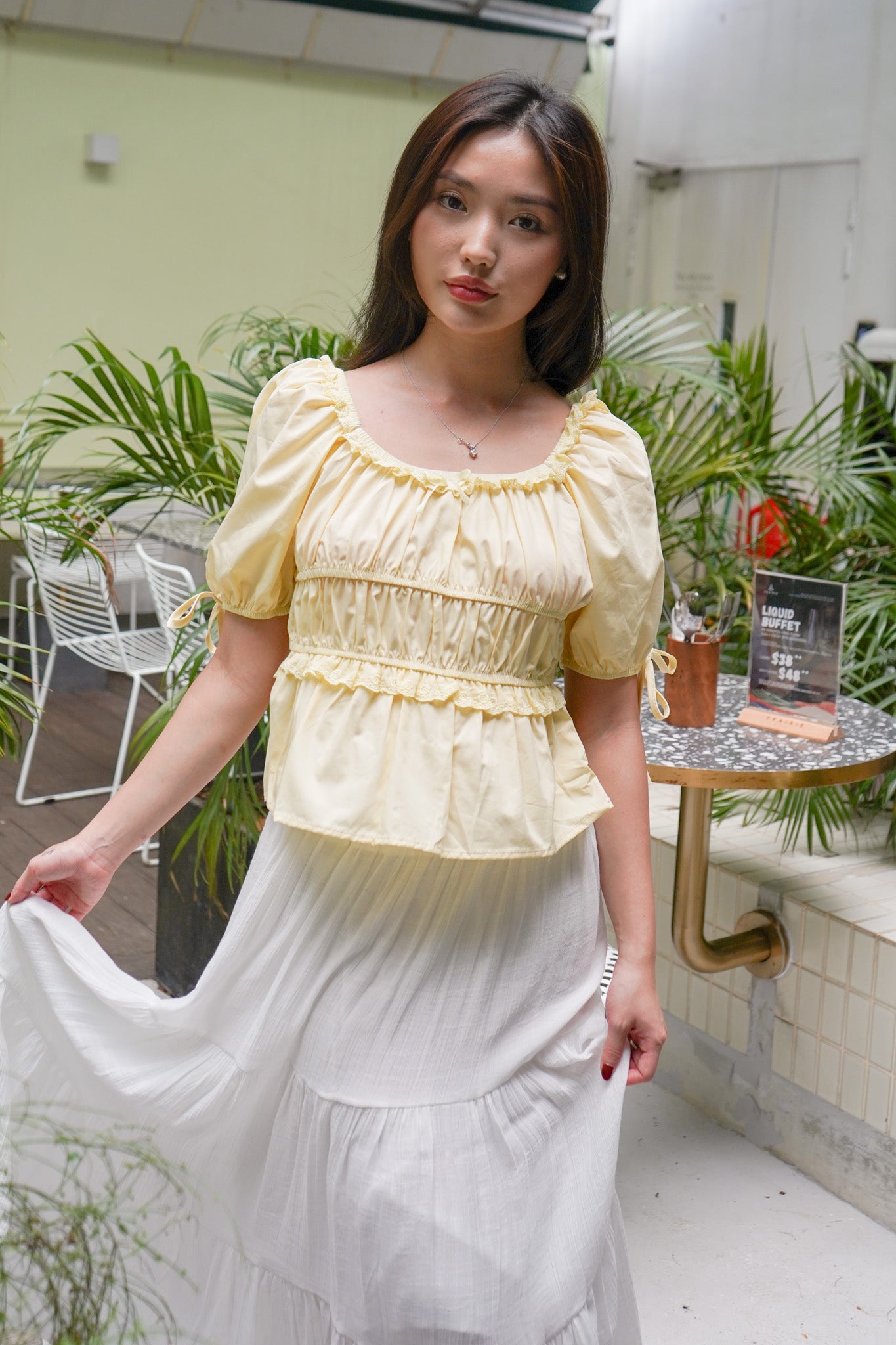 Riya Ruched Elastic Puff Sleeve top (Butter)