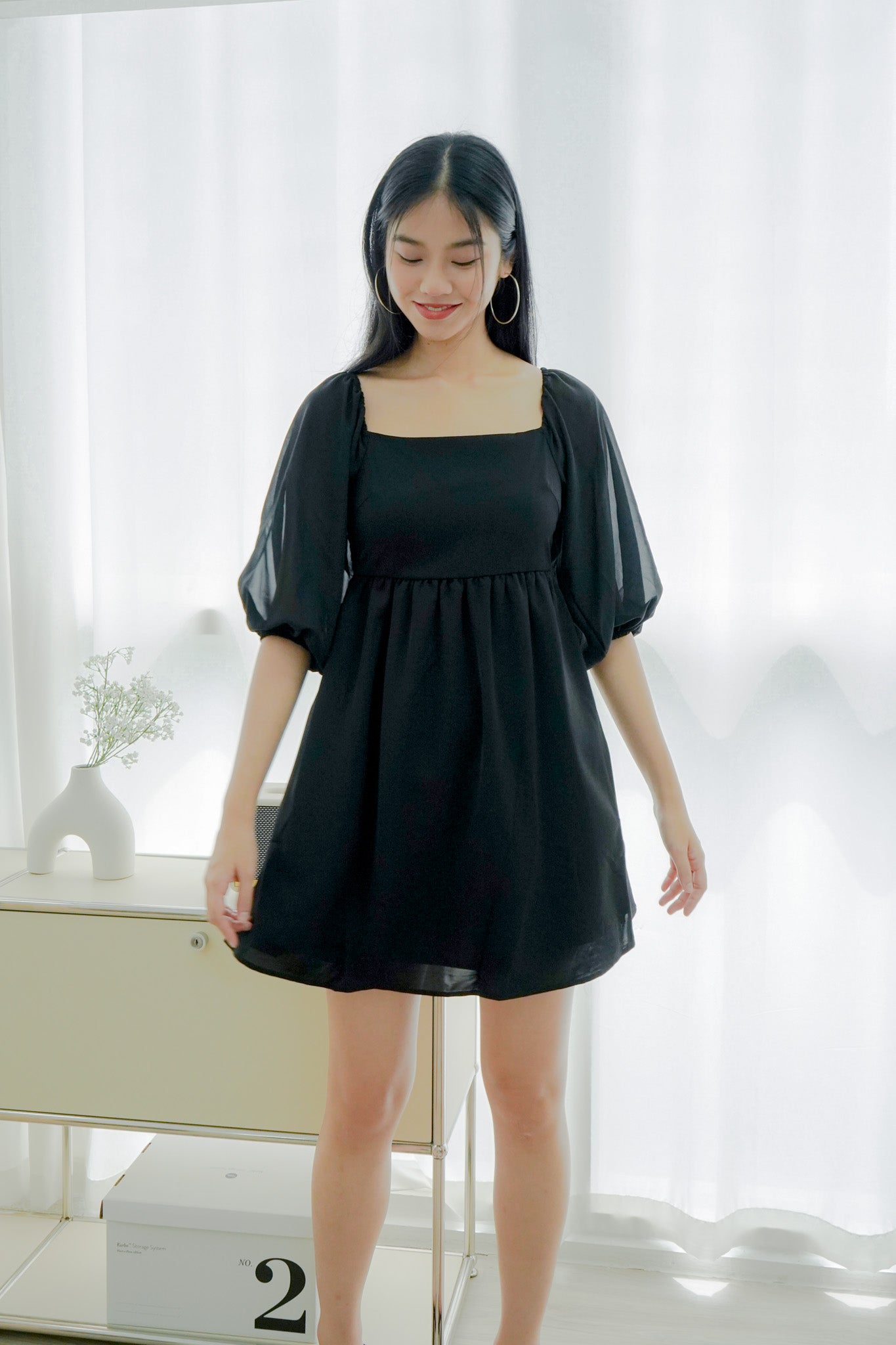 Sienna Half-sleeve Babydoll Dress (Black)