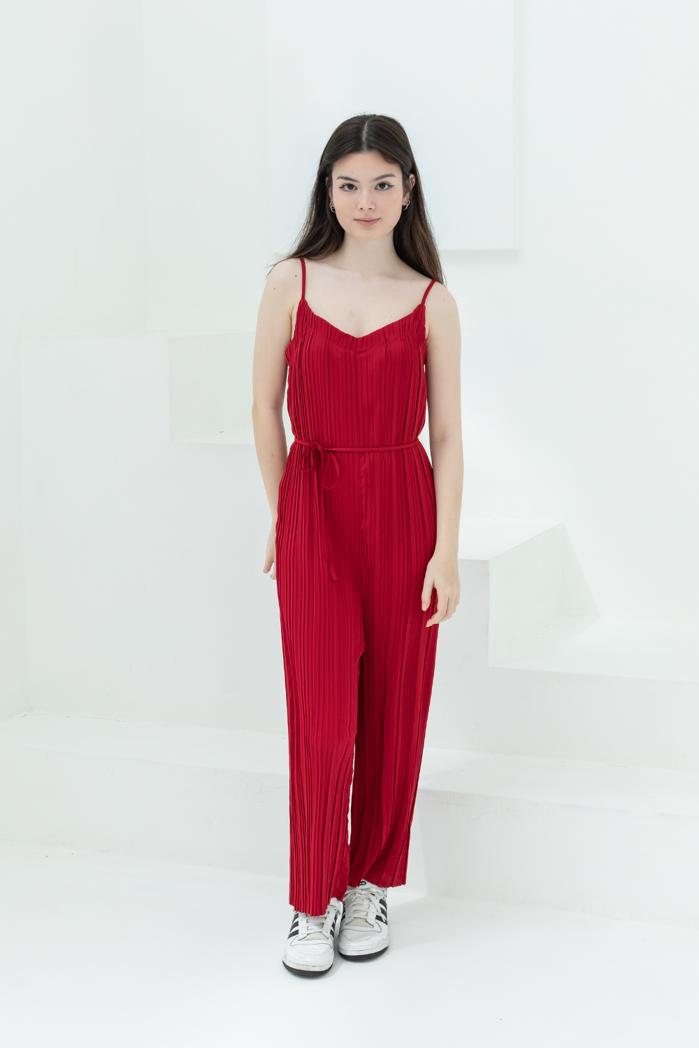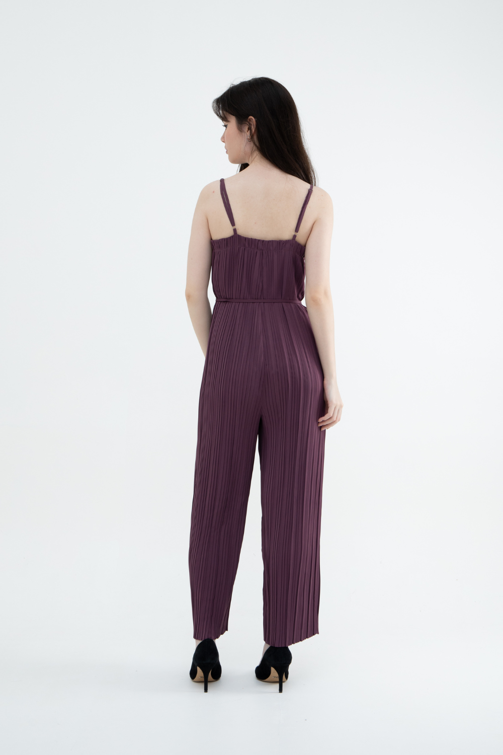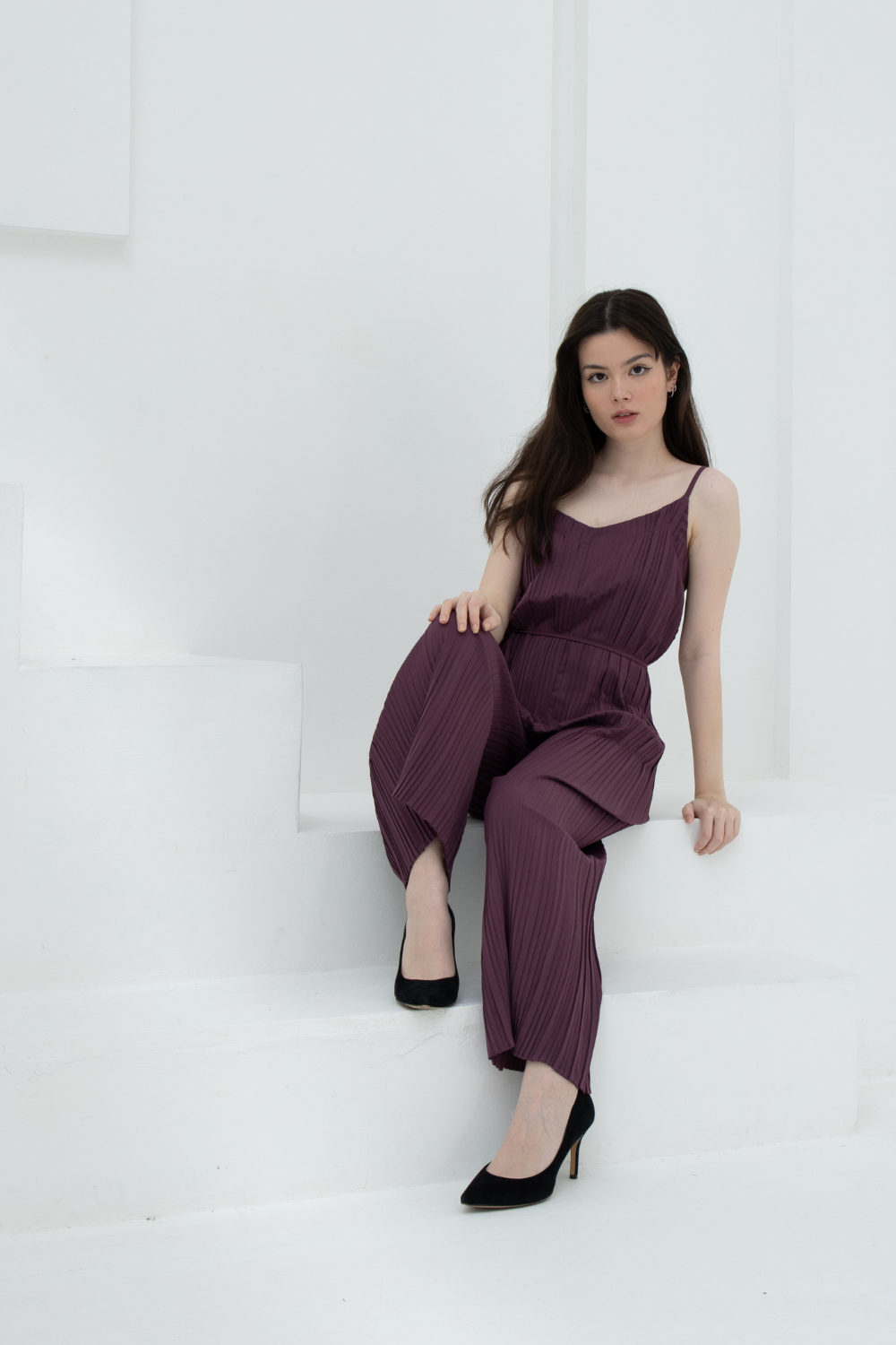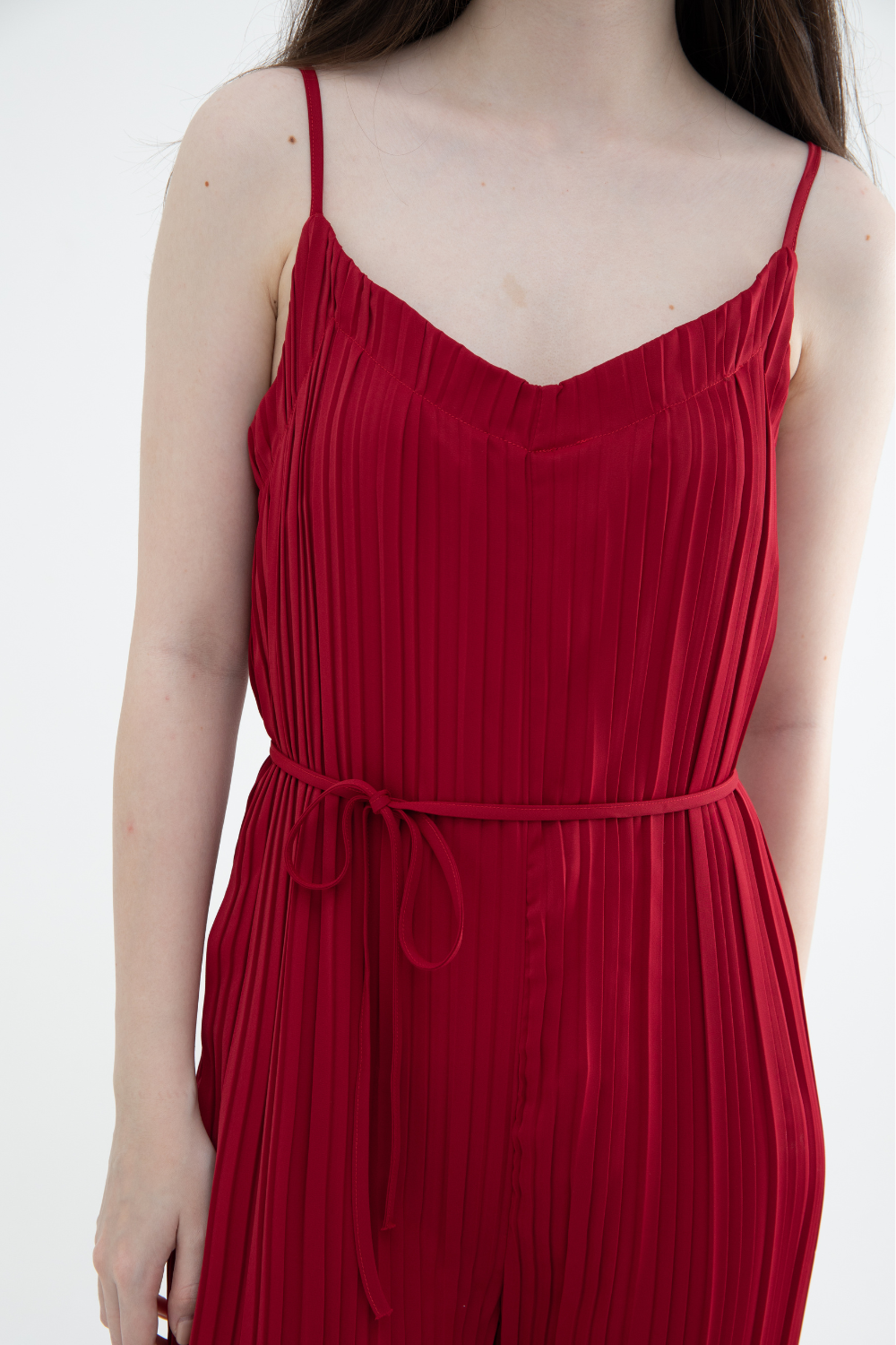 Sleeveless Pleated Sweetheart Jumpsuit (Crimson Red/Dusty Pink/Dark Purple)