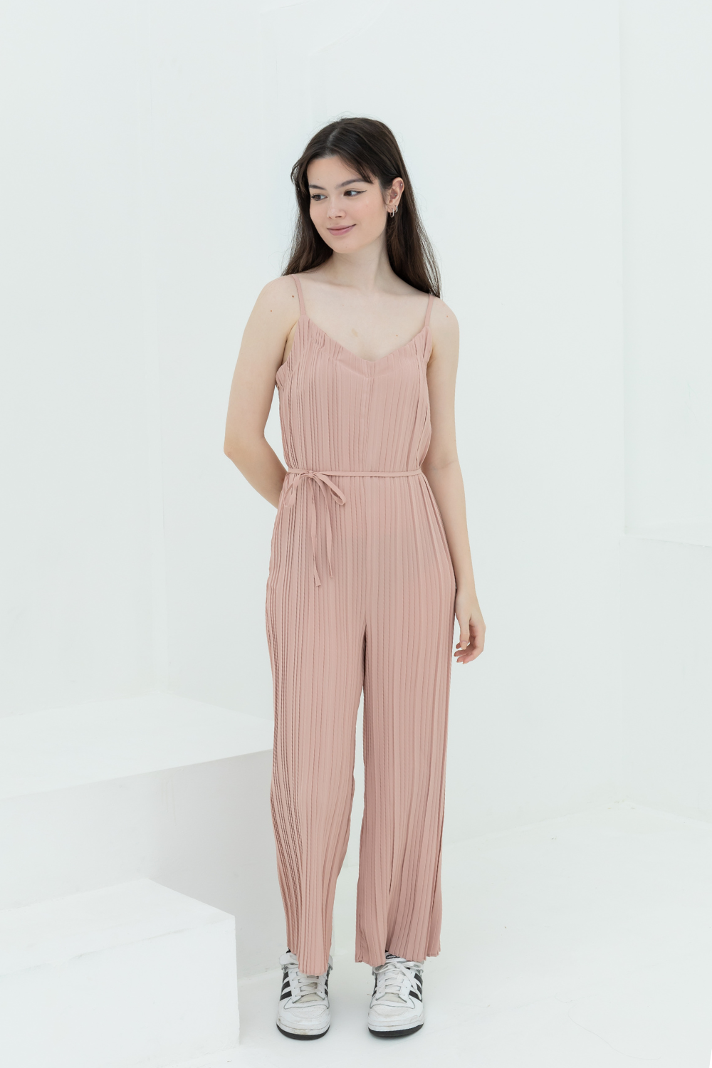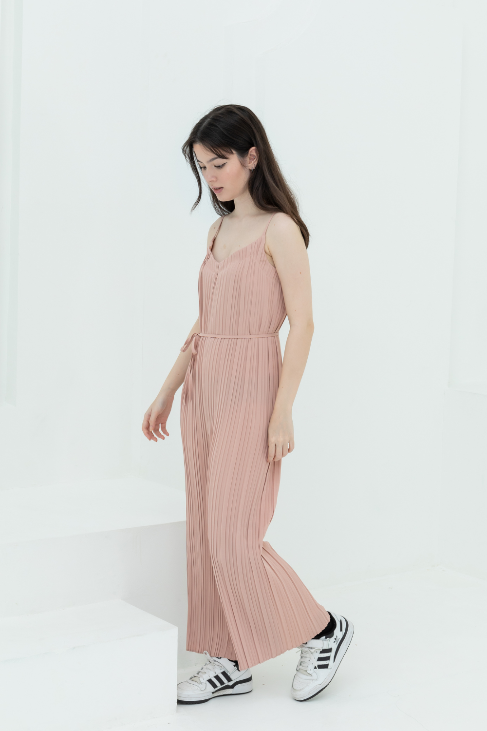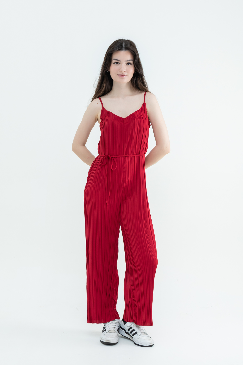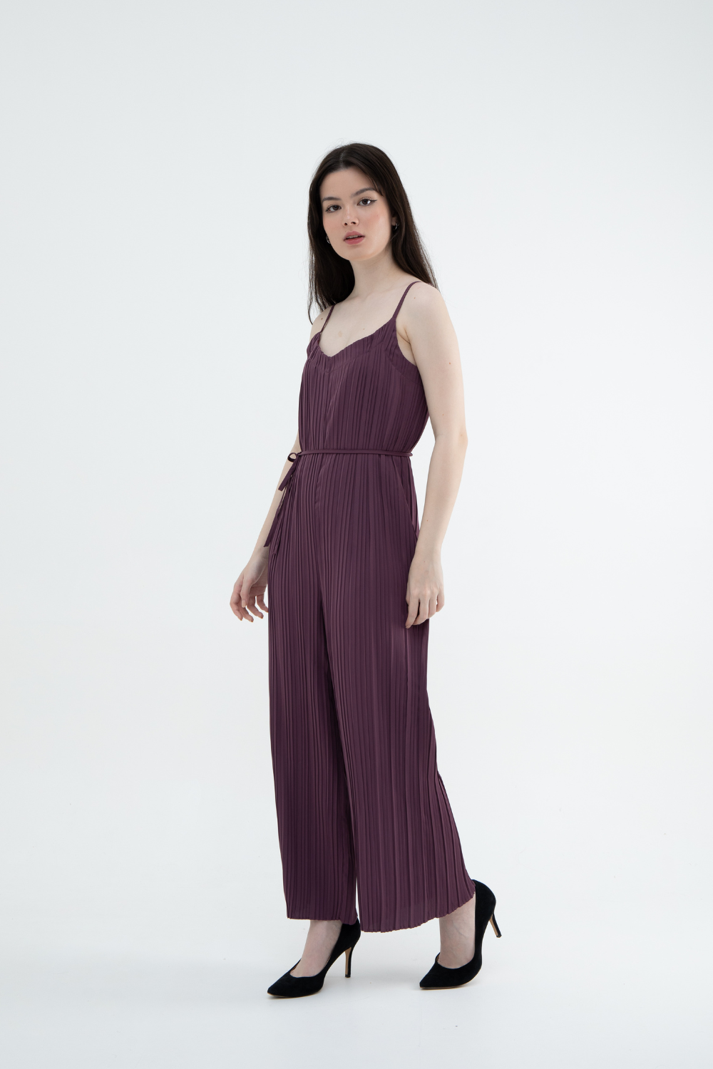 Sleeveless Pleated Sweetheart Jumpsuit (Crimson Red/Dusty Pink/Dark Purple)