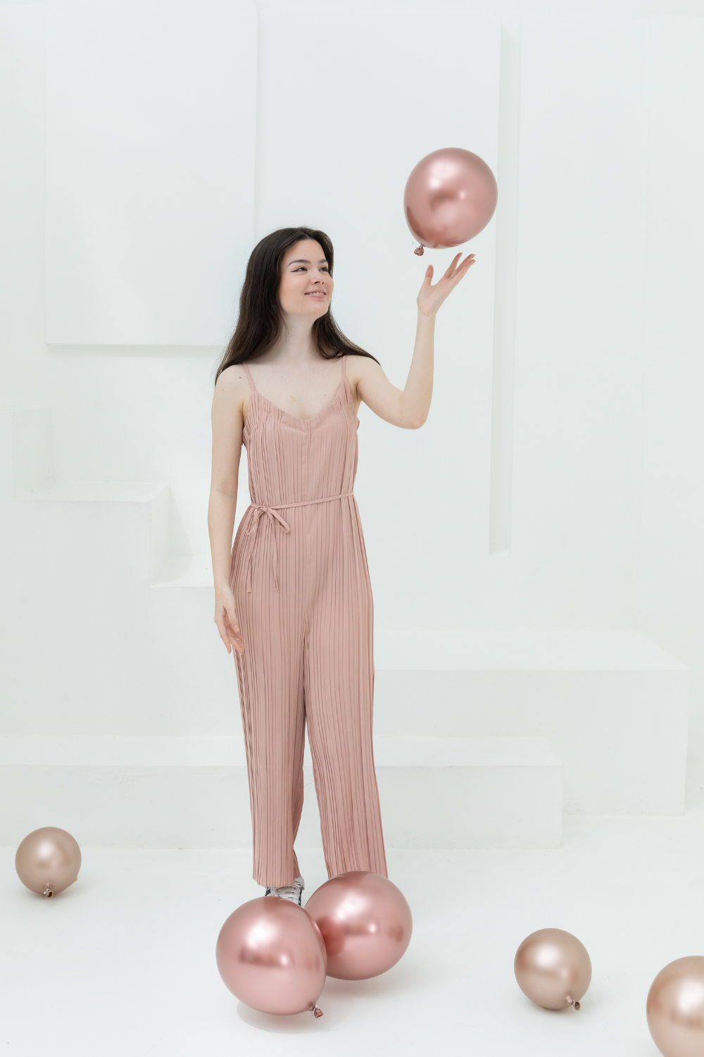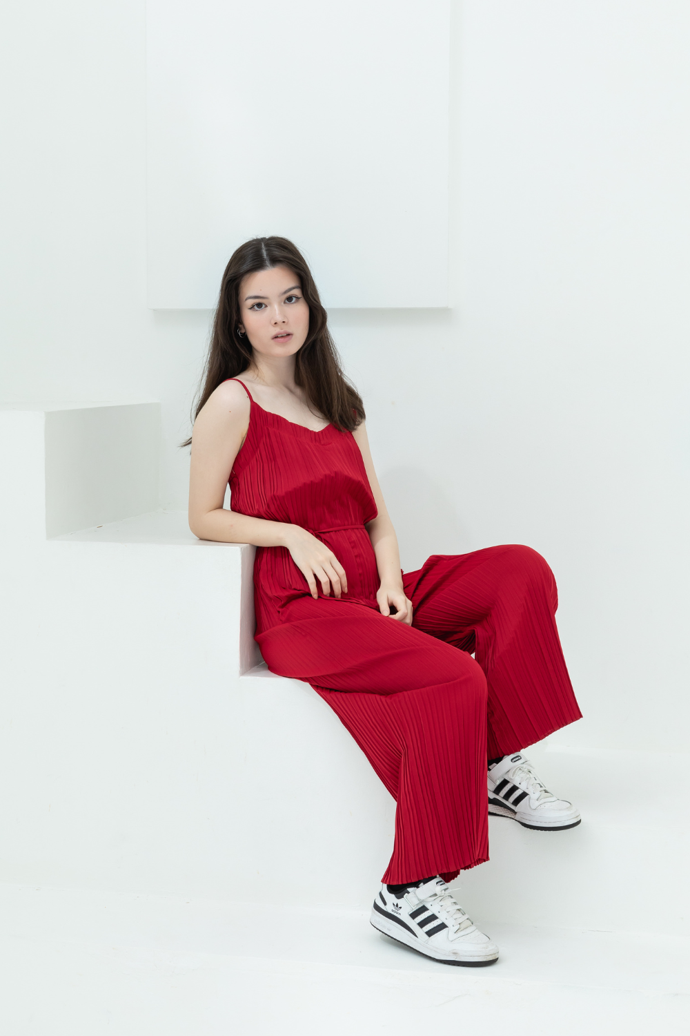 A lovely classy piece in 3 different colours - crimson red, dusty pink and dark purple. Feel like a sweetheart in the pink jumpsuit, a royale in the purple and cheery in the red. Designed with a V-neckline and adjustable straps, this fit is comfortable and designed to allow you to be playful and just have fun! The neat pleats further give off a modern and elegant look. Suitable for work and casual occasions. If you have always wanted a jumpsuit that can make you look amazing,