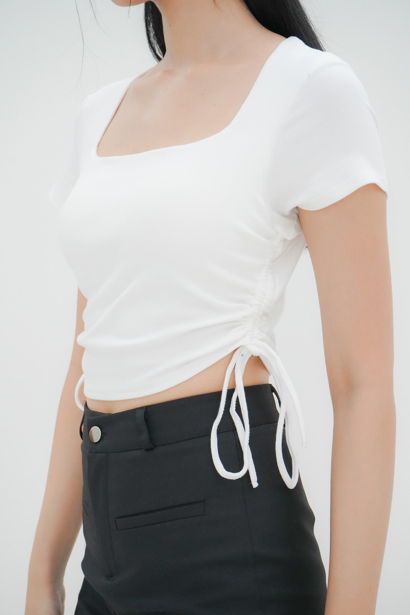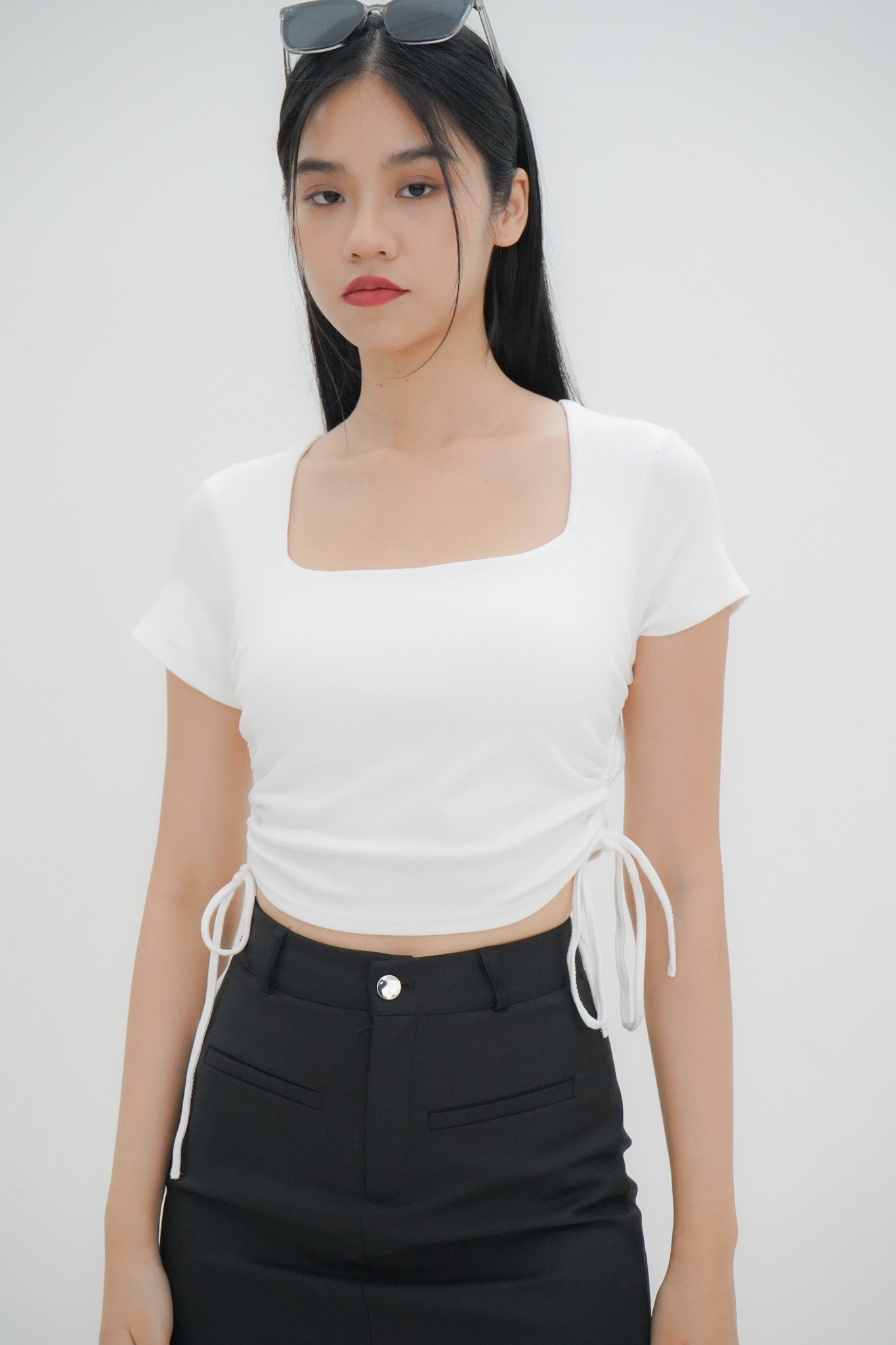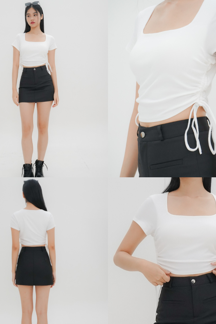 Sloan features a square neckline, side drawstrings that allow a customisable fit and ruching detail that’s both flattering and stylish. Comes with built in padding, making it a fuss-free top! Pair with high waisted jeans or a mini skirt to complete the look.