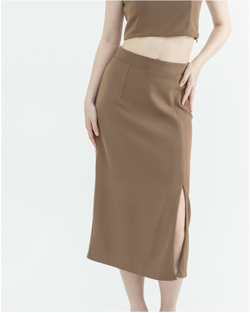 This skirt is designed to bring out your beautiful curves, with a mid-way slit which showcases just enough and at a comfortable level to avoid unintentional exposure. The skirt can also be easily matched with basic tops such as our basic square neck ribbed top, or if you want an outfit set, check out the co-ord set.
