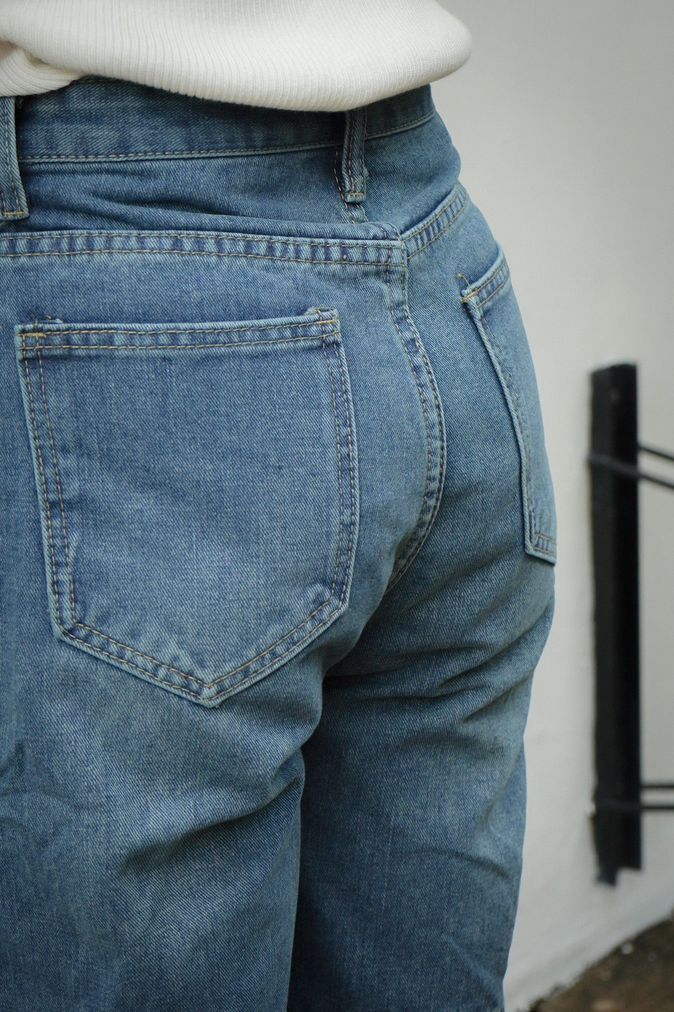 Una, a timeless wardrobe staple, is a vintage high-waist denim shorts with side pockets are a stylish. Design to sit above the natural waistline, accentuating the waist and creating a flattering silhouette with a touch of vintage via a slightly faded or distressed look, evoking classic 80s and 90s fashion. The side pockets serves functional and practical, while adding to the casual, effortless vibe of the shorts.